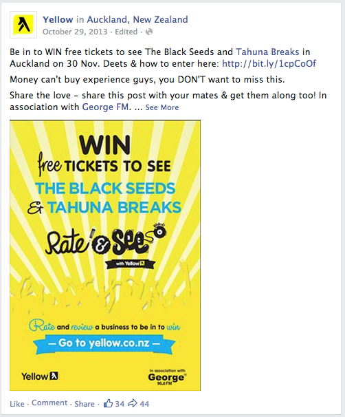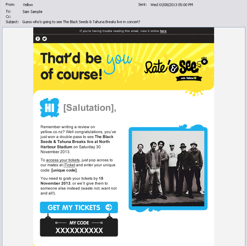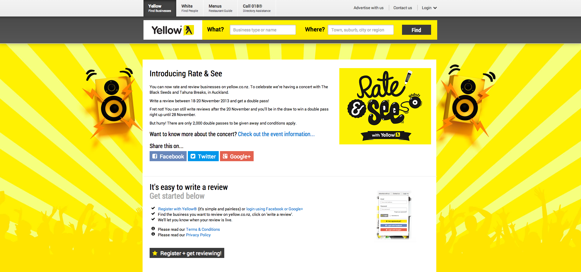 Throw a concert with The Black Seeds & Tahuna Breaks where tickets couldn’t be bought, only won. How? You guessed it, by reviewing businesses on yellow.co.nz.