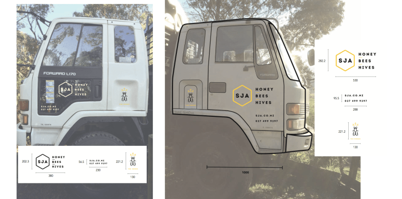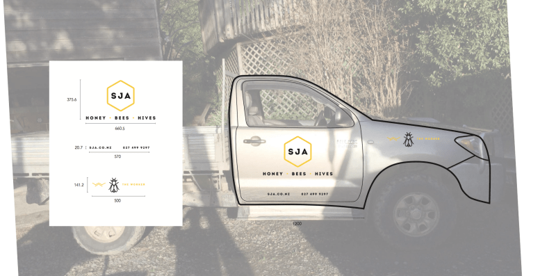 My good friend Jason in an enthusiastic beekeeper. So enthusiastic, in fact, that he quit his day job and is now one of the largest suppliers of Manuka honey to Comvita in New Zealand. And what do all big premium companies need? That’d be a logo.. and business cards.. and a website.. oh, and branded vehicles.. and branded sticky tape.