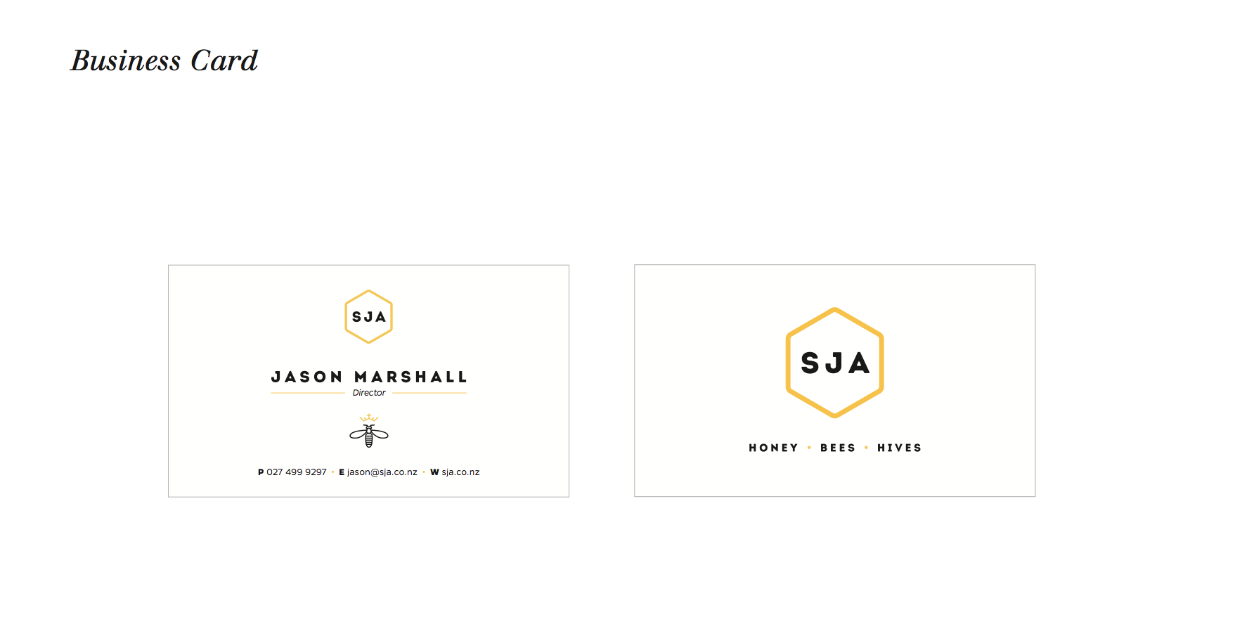 Being a beekeeper, Jason didn’t know much about design. So I said I’d help out and introduced him to my other good friend, George (who knows a lot about design). As the project manager I wrote a brief, managed both Jason’s and George’s expectations on timings and budget and together we created the brand identity for SJA.